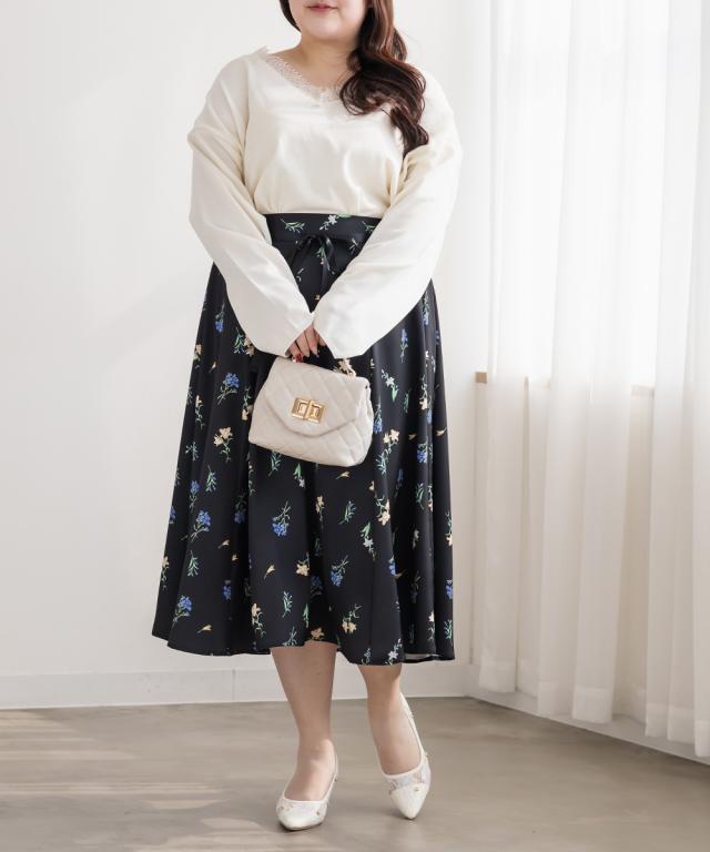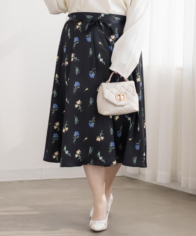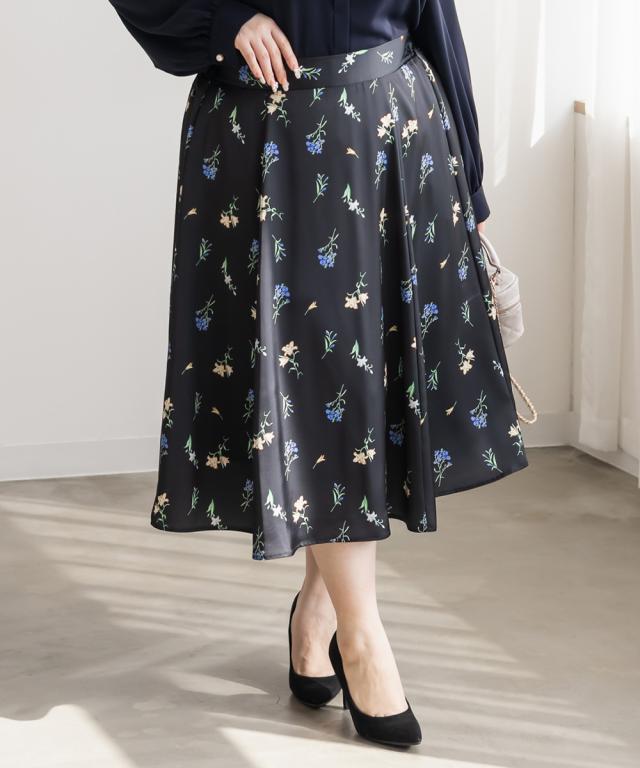 大きいサイズ/レディース/3L/4L/花柄サテンフレアスカート