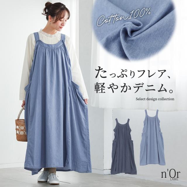 ジャンスカ デニム レディース ワンピース ロング丈 ジャンパースカート サロペットスカート 綿100% フレア 調節可能 薄手 春 夏 【TP】 デニムスカート スカート ボトムス ロングワンピース マキシワンピース サロペット n'OrLABEL ノアールレーベル 大人女子 大人可愛い お洒落可愛い 大人カジュアル ベーシック ラフ 上品 きれいめ ナチュラル ノースリーブ マキシ丈 調節 調整可能 ギャザー 無地 コットン100% レイヤード 重ね着 ポケット おうちで洗える ロングシーズン カジュアル シンプル モード キレカジ フェミニン ガーリー ゆったり ゆる 楽ちん Sサイズ Mサイズ Lサイズ LLサイズ 3Lサイズ XLサイズ フリーサイズ ぽっちゃり 体型カバー 体形カバー 大きいサイズ プラスサイズ 10代 20代 30代 40代 50代 60代 低身長 高身長 女子会 オフィス 通勤 通学 お買い物 お出掛け 旅行 リゾート レジャー おしゃれ お洒落 トレンド 流行 osharewalker オシャレウォーカー おしゃれうぉーかー ブルー 青 ネイビー 紺[ID]11dp040[n'OrLABELたっぷりフレアデニムジャンスカ]