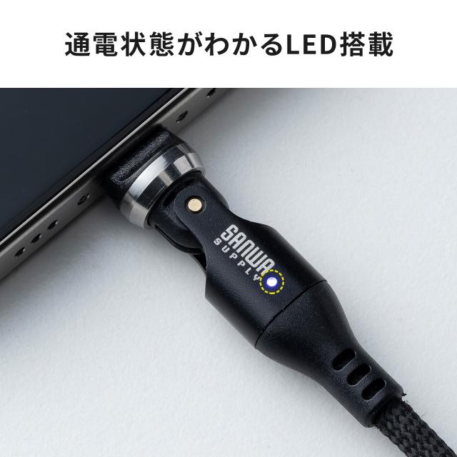 USB Type-Cケーブル PD240W L字 全方向対応ケーブル 両端回転コネクタ スマホ switch 充電 540°回転 USB2.0 480Mbps 1.8m ブラック[500-USB090-18BKN]