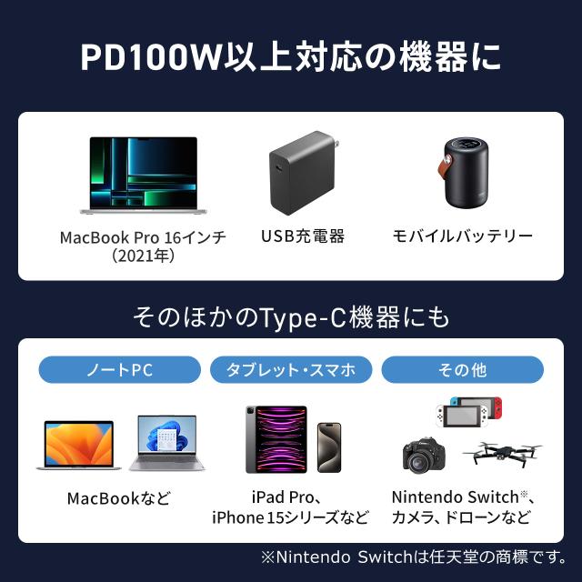 ●Nintendo SwitchやNintendo Switch Liteの充電にも対応しています。
