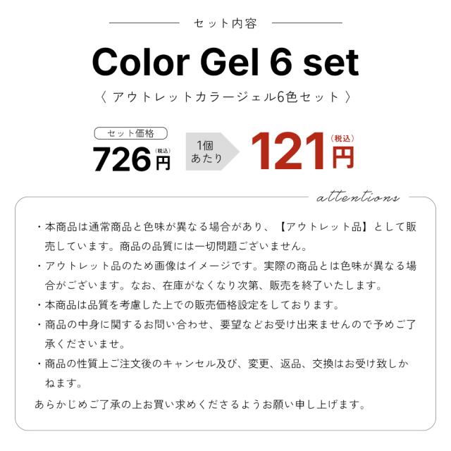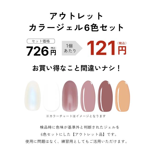 カラージェル6色をセットにした【アウトレット品】です。