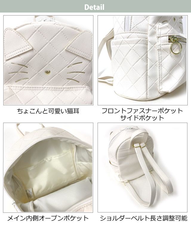 ![]() ![]() ![]() ![]() ![]() ・Merry Crown メリークラウン ネコキルト ネコミミとネコフェイスがかわいいミニリュック。小学生女子に人気です。 大人っぽいデザインも好評。人気のオルチャンファッションにもよく似合います。 ちょっとショルダーを長めにしてルーズに背負うといまどきコーデに 旅行・遠足・通園・通学・お出かけにおすすめ。 誕生日プレゼント・クリスマスプレゼントにも人気です。