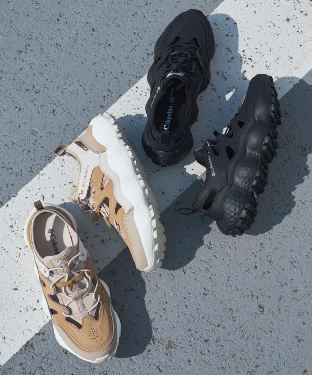 サンダルらしい爽やかなルックスに、波打つような肉厚ソールが特徴的なコロンビア最高峰のミッドソールテクノロジーと、トレイルシューズから着想を得た安定感のあるグリップ力を誇るアウトソールを備えたハイスペックな一足。