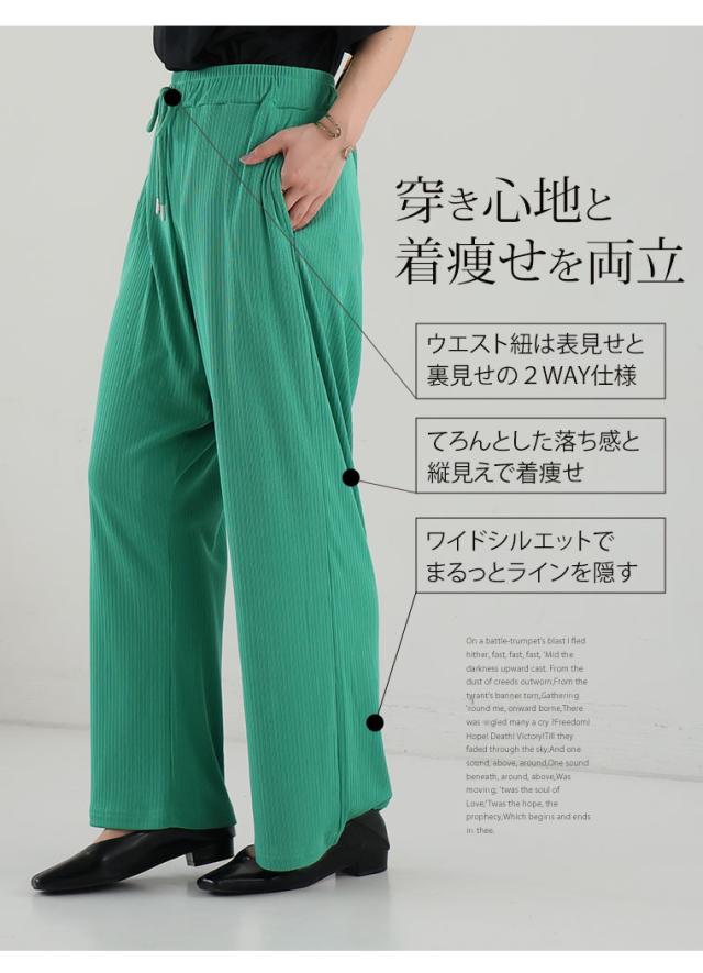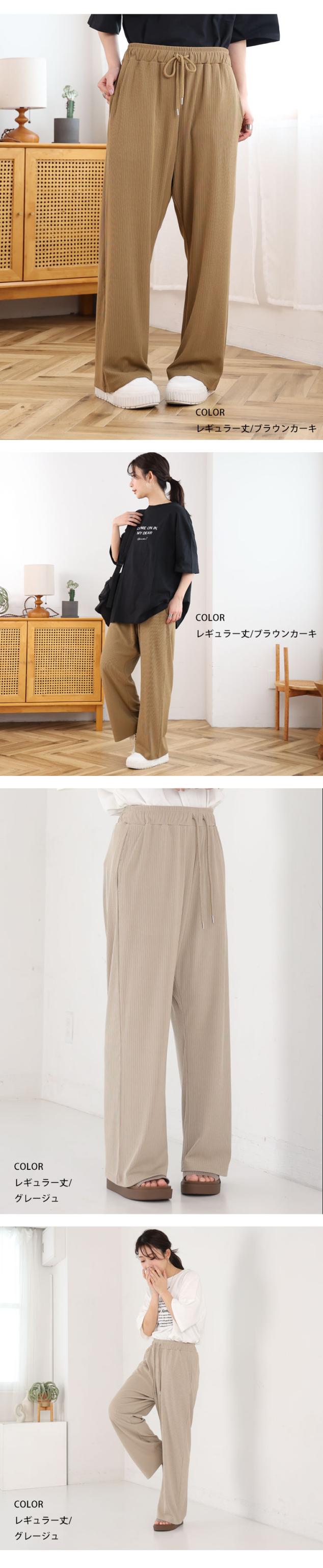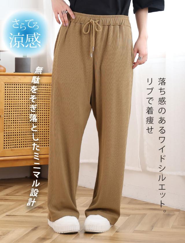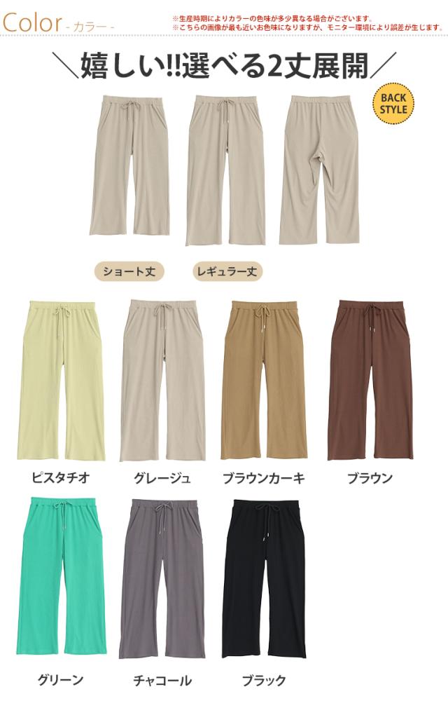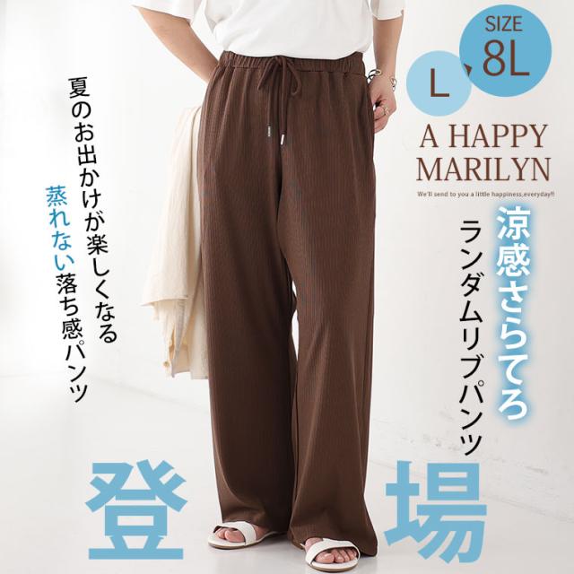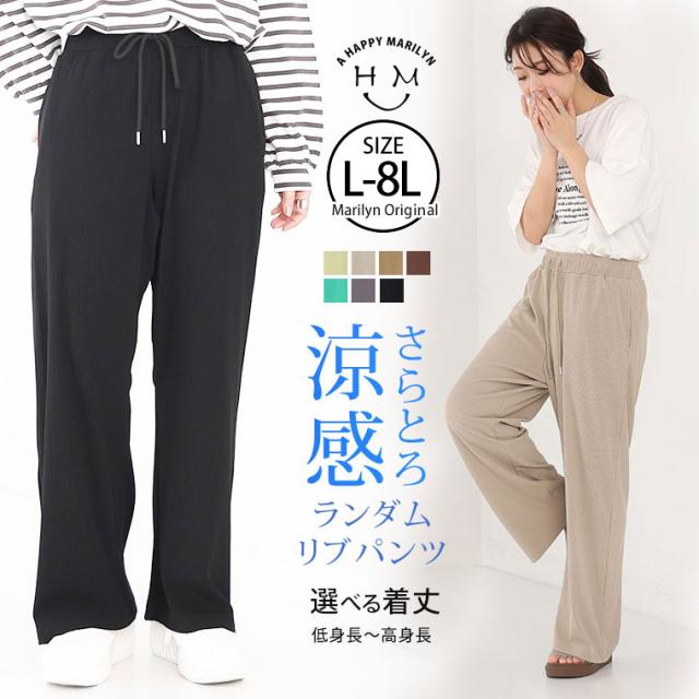 新作 大きいサイズ レディース パンツ | 丈が選べる! さらっとろ ランダム リブ イージーパンツ [433142] LL 3L 4L 5L 6L 7L 8L