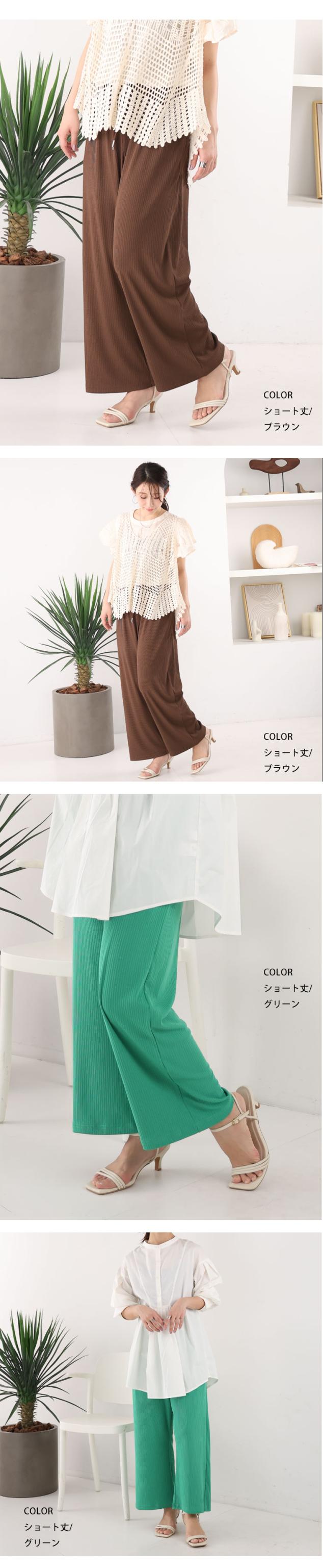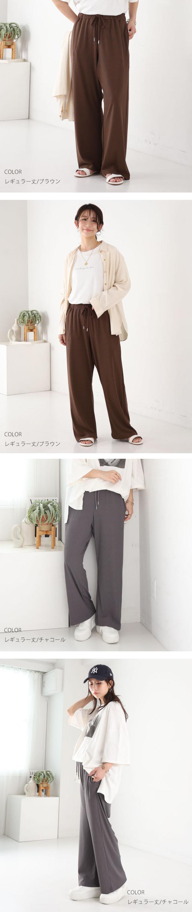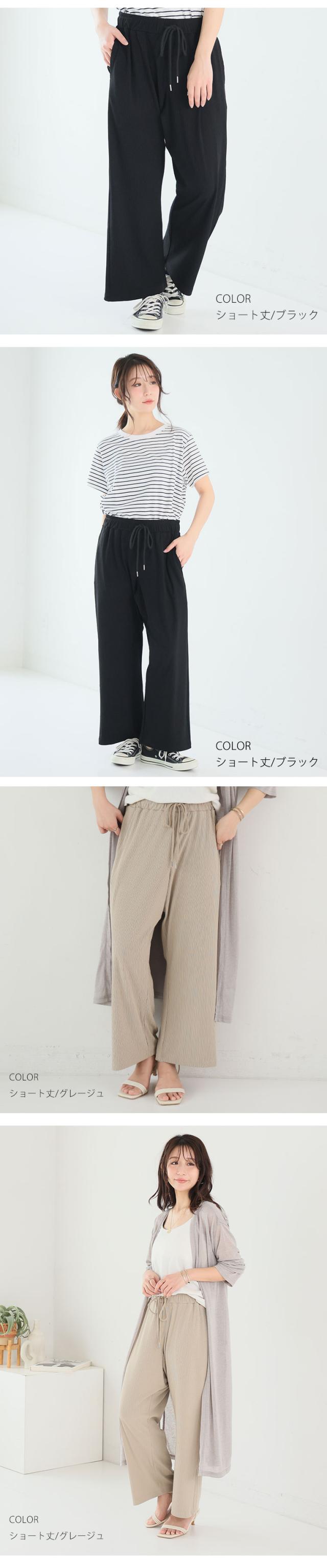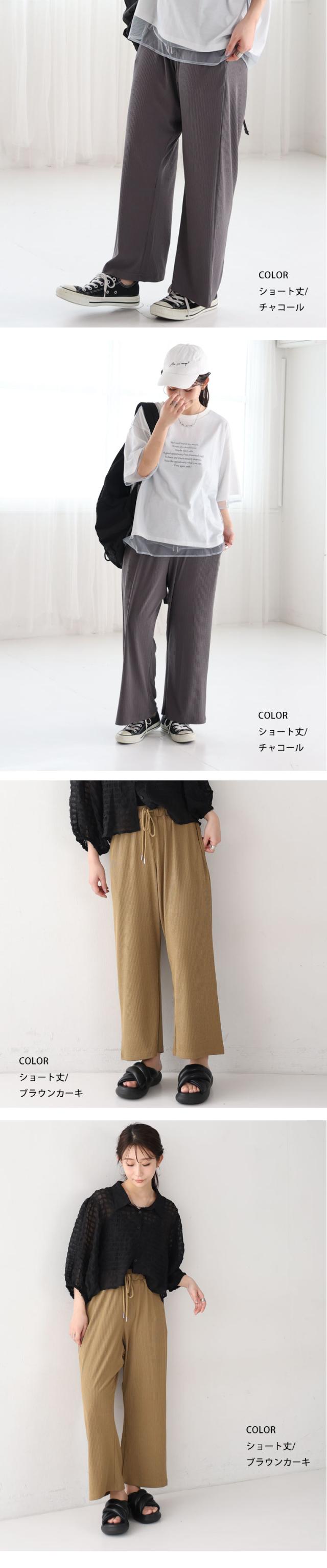 新作 大きいサイズ レディース パンツ | 丈が選べる! さらっとろ ランダム リブ イージーパンツ [433142] LL 3L 4L 5L 6L 7L 8L