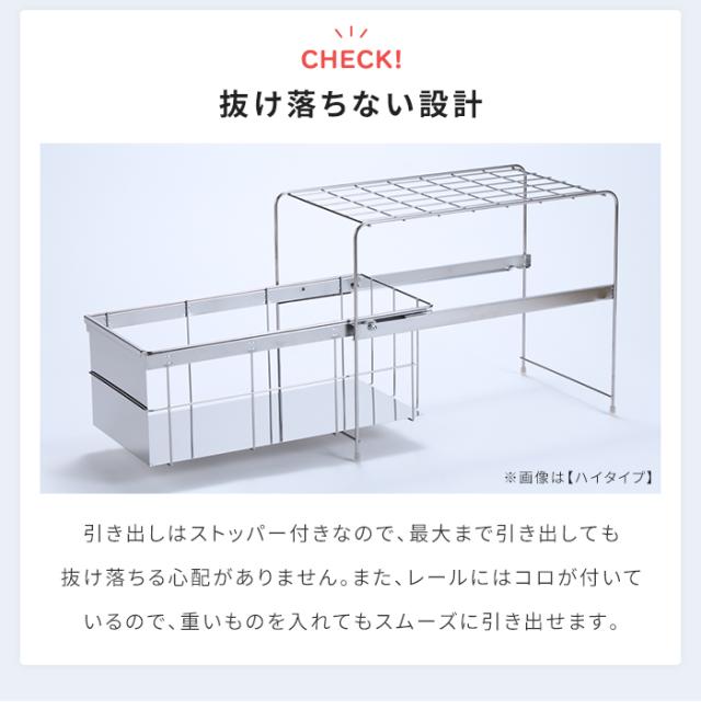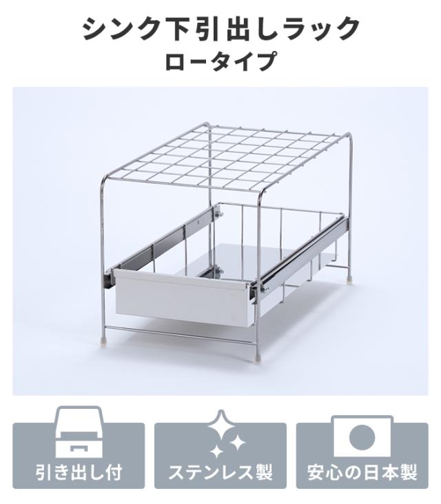 シンク下 引出しラック 幅25 奥行45 高さ26 ロータイプ シンク下収納ラック 引き出し ステンレス製 日本製 燕三条 シンク下収納 引出 スライド シンク下収納バスケット ステンレス スライド ラック 引出し おしゃれ キッチン収納 新生活 一人暮らし