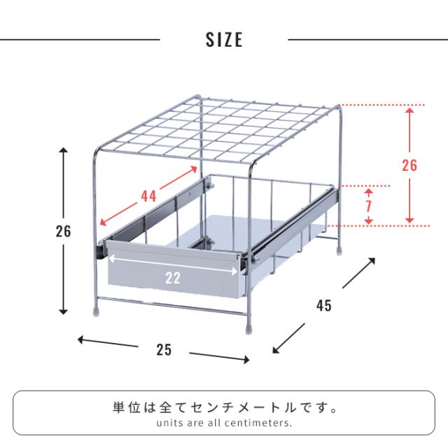 | シンク下収納 シンク下ラック 引き出し収納 スライドラック キッチン収納 ステンレスラック メッシュラック ロータイプ収納 デッドスペース活用 隙間収納 幅25cm 奥行45cm 完成品 日本製 台所収納 調味料収納 鍋収納 ボトル収納 洗剤収納 サビにくい 通気性 水回り収納 省スペース収納 整理整頓 キッチンラック |