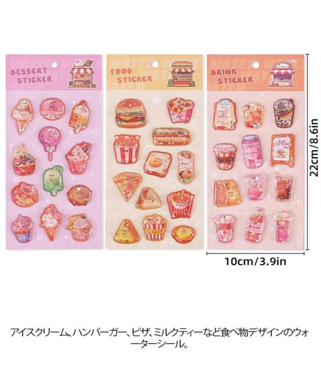 立体 食べ物 立体 水入り ドーナツ サンドイッチ ケーキ ウォーターイン 女の子 ぷくぷく 【3枚組】ウォーター 3D ぷっくり 【3枚組】ウォーター シャカシャカ 飲み物