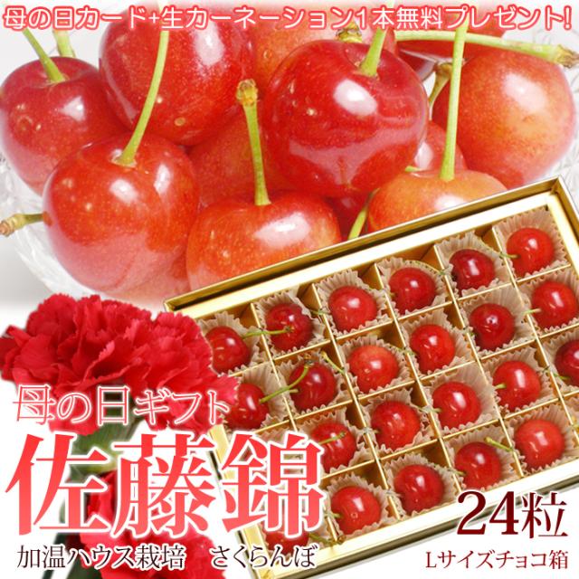 2026年母の日ギフト【5/4-5/9に発送】さくらんぼ 山形県産 佐藤錦(秀品 Lサイズ 24粒 カーネーション付 オリジナルボックス入り) (沖縄・離島配送不可)