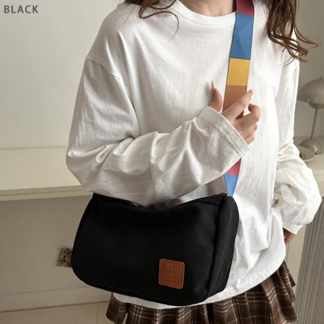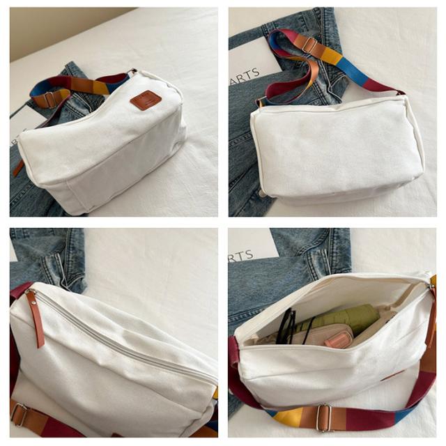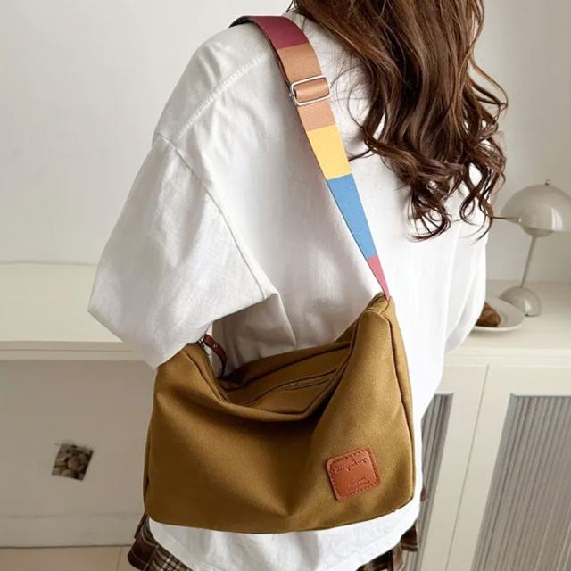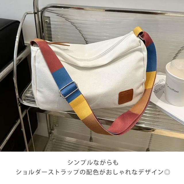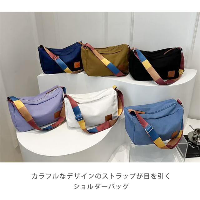 カラフルなデザインのストラップが目を引くショルダーバッグ