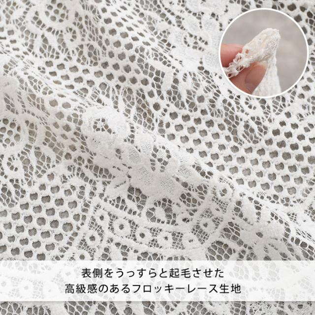 高級感のある、表側をうっすらと起毛させたフロッキーレース生地