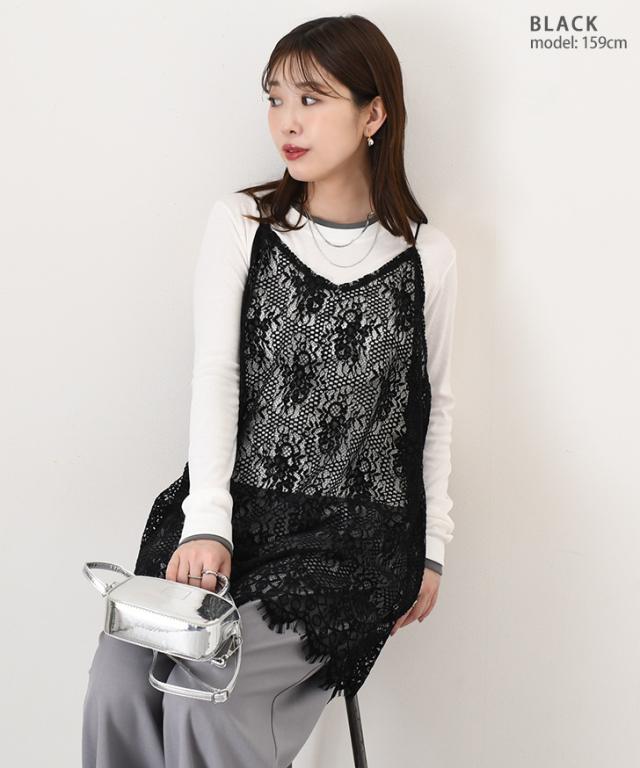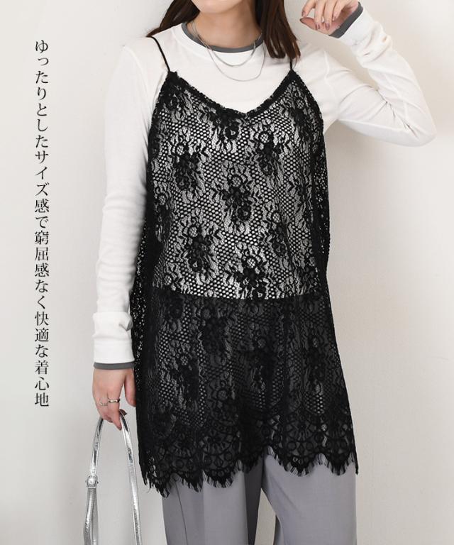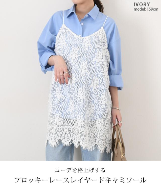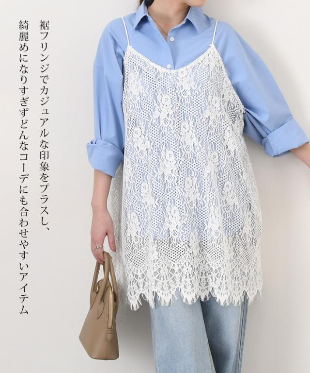 新作 フロッキーレース裾フリンジワイドロングレイヤードキャミソール レディース Vネック 総レース きれいめ カジュアル トップス 見せる インナー 薄手 春 夏 ゆったり 大きいサイズ 体型カバー 重ね着 トレンド