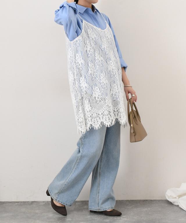 コーデを格上げするフロッキーレースレイヤードキャミソール