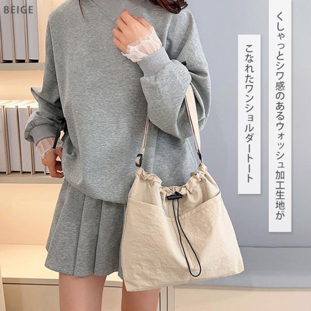 くしゃっとシワ感のあるウォッシュ加工生地がこなれたワンショルダートート