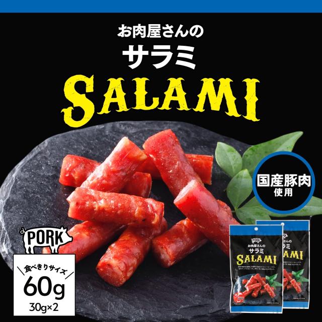 サラミ 60g (30g×2袋) 国産 豚肉 おつまみ 行動食 登山 珍味 酒の肴 おやつ 晩酌 プレゼント ギフト ピクニック キャンプ アウトドア 買い回り おためし お試し 父の日 母の日 カジュアルギフト