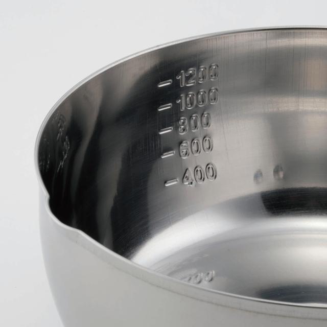 調理がはかどる目盛りと、注ぎやすい両口付きです
