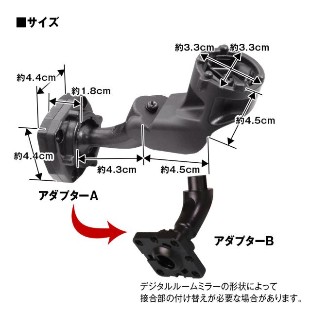 ※取り付けるデジタルルームミラーの形状により接合部の付け替えが必要な場合があります。