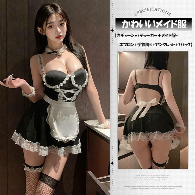| セット内容 | カチューシャ、チョーカー、メイド服、手首飾りX2個、エプロン、アンクレット、Tバック |