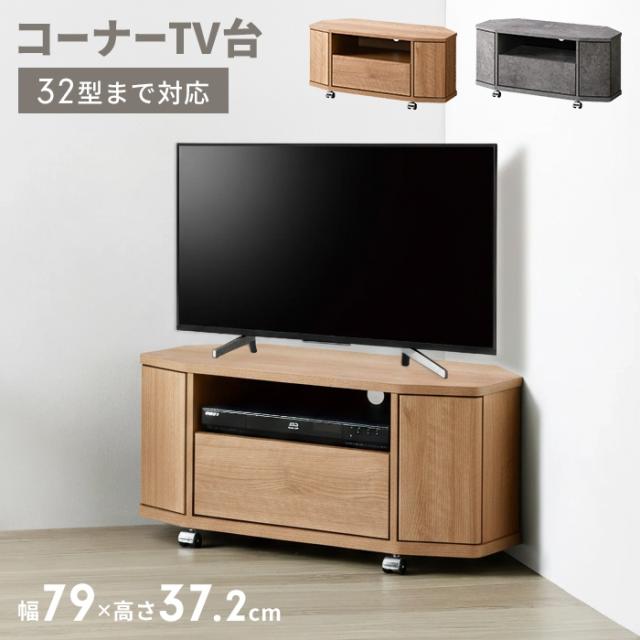 【値下げ】コーナーテレビ台 幅79cm キャスター付き テレビボード 32型まで対応 TV台 コーナー 角 省スペース ローボード 引出収納 収納付き 引き出し 扉収納 北欧 おしゃれ リビング収納 モダン ナチュラル 石目調 32V対応 新生