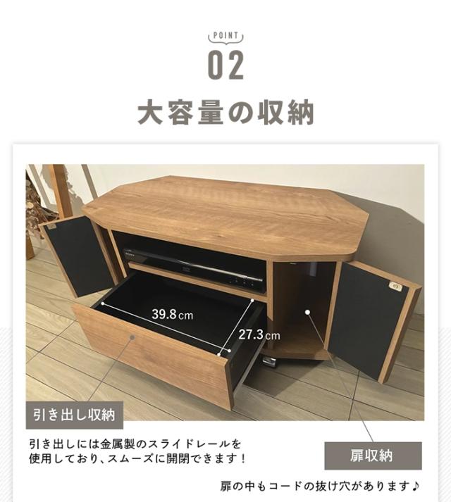 お部屋の角を有効活用できる、省スペース設計のコーナーテレビ台。