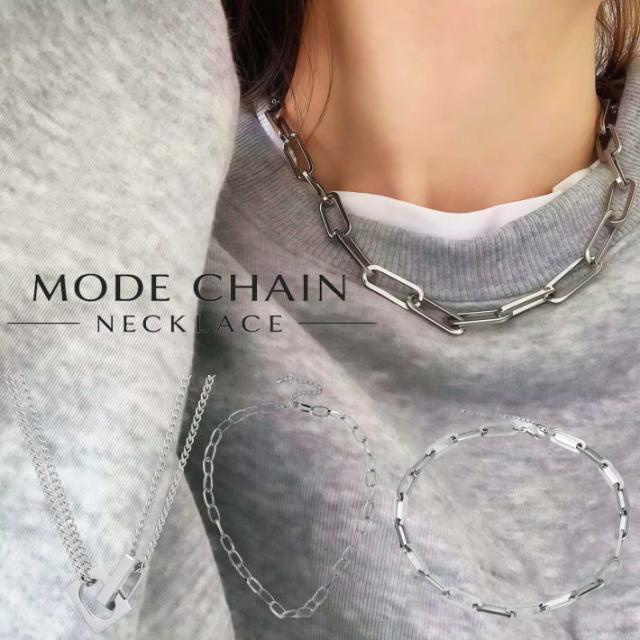 【即トレンド顔】モード チェーン ネックレス レディース メンズ アクセサリー NEK 7986552 シンプル シルバー 太め 華奢 重ね付け 送料無料