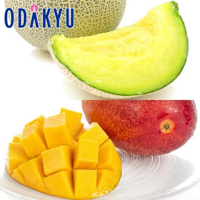 熊本県産「アンデスメロン」2Lサイズ×1玉、宮崎県産「完熟マンゴー」2Lサイズ×1玉を詰め合わせました。