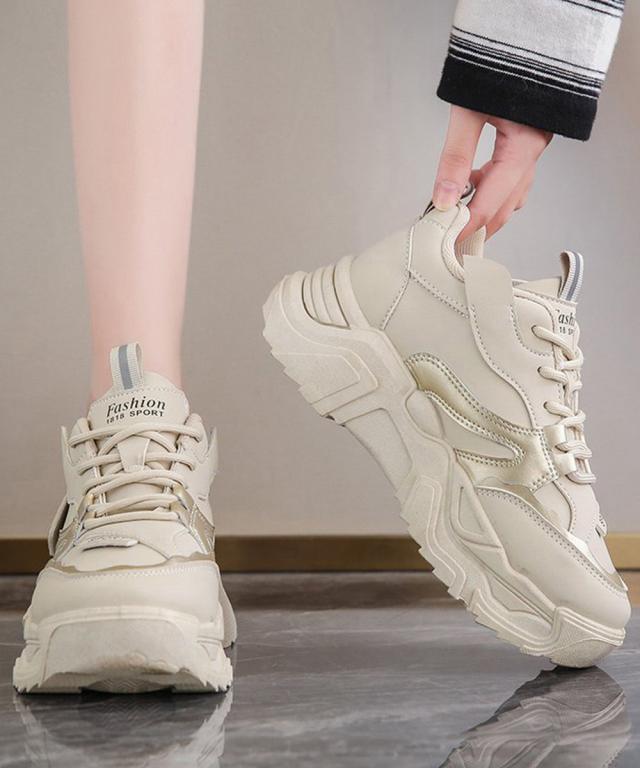 厚底スニーカー 疲れない 通勤通学靴 ウォーキング 履きやすい PUレザー ハイソール靴 韓国ダッドシューズ 歩きやすい