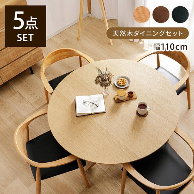 ダイニングセット 4人用 5点セット 「 ダイニング テーブル ユクノ + 肘付き ダイニングチェア パックス 」 110×71cm 円形 おしゃれ テーブル 北欧 チェア 木製 ナチュラル 食卓 リビング 組立品 レトロ カフェ