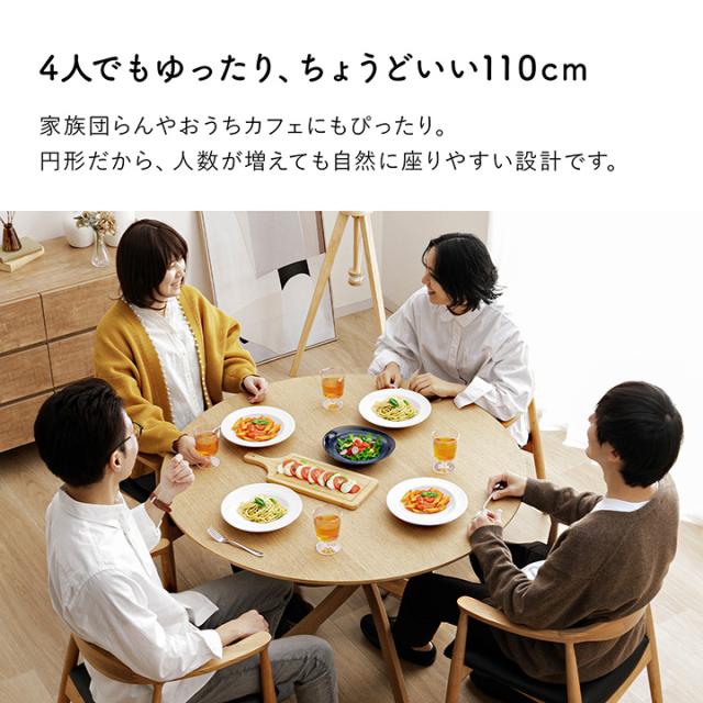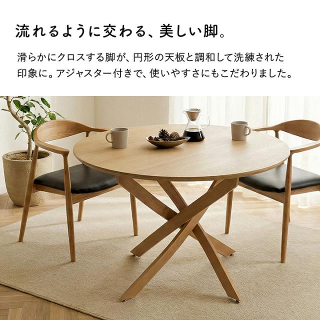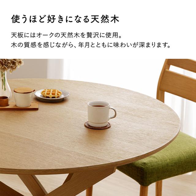 | 【サイズ】 約110×110×71cm円形 【組成】 天板=MDF オーク突板 天板裏=MDF エンボスシート 脚部=スチール木目転写プリント 【製品重量】 天板=約19.56kg 脚=約7.04kg 【原産国】 中国 【商品説明】 ■ やさしく暮らしになじむ丸いフォルム。自然と人が集まり、心地よいひとときを育むラウンドテーブルです。 ■ 円形テーブルならではのコミュニケーション設計。視線が自然に合い、会話が弾む囲みスタイルです。 ■ 直径110cmで2〜4人にちょうどいいサイズ感。日常の食事から来客時まで幅広く活躍します。 ■ 天板にはオーク突板を採用。天然木ならではのぬくもりある表情と、豊かな木目が、空間に温かみを添えます。 ■ 360°どこから見ても美しいデザイン。上質な存在感を放ちます。 ■ センター脚デザインで足元すっきり。出入りしやすく、家族やゲストとの時間をゆったり快適に。 ■ 表面はウレタン塗装仕上げ。汚れや水に強く、日々のお手入れも簡単です。 ■ 丸みのあるデザインで角がなく、小さなお子さまのいるご家庭にも安心。 ■ 船底エッジ加工で、指触りまでやさしく滑らか。細部まで丁寧に仕上げています。 ■ 北欧・韓国・ナチュラルインテリアと好相性。どんな空間にもなじむ、自然体のスタイルです。 ■ 脚部にはアジャスターを装備。がたつきを防いで安定感を保ちます。 |