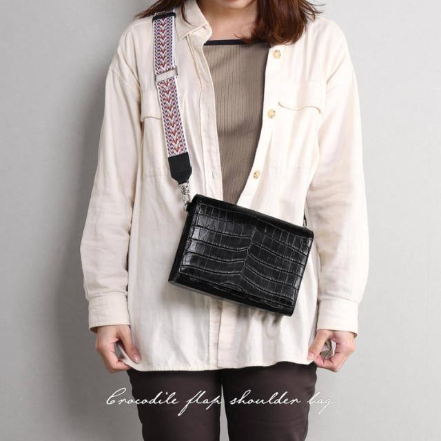| 商品名:ナイルクロコダイル かぶせショルダーバッグ マット加工 (06001969r) |