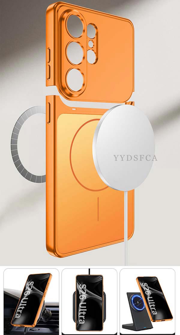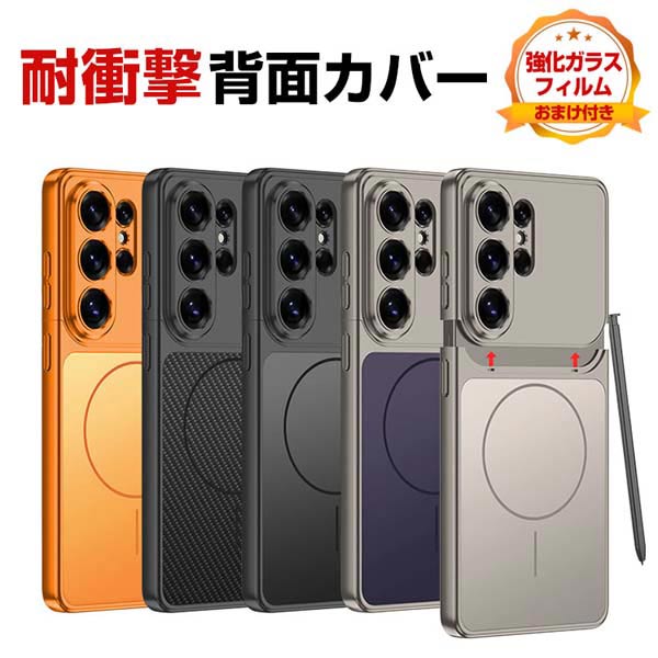 Samsung Galaxy S26 Ultra ケース 四隅耐衝撃 カバー 保護ケース PC素材 CASE おしゃれ ハードケース 衝撃に強い 便利 実用 人気 磁気充電 サムスン ギャラクシー S26 ウルトラ ケース 脱着式 背面カバー 強化ガラス付き