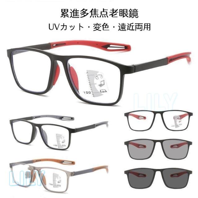 メガネ 老眼鏡 遠近両用 UVカット サングラス 軽量 累進多焦点レンズ ブルーライトカット レディース 紫外線カット メンズ シニアグラス 調光 変色 超軽量 おしゃれ スクエア