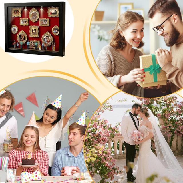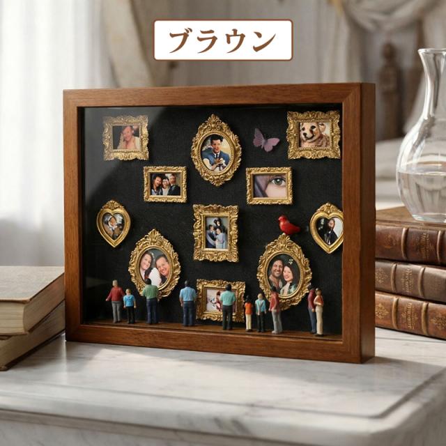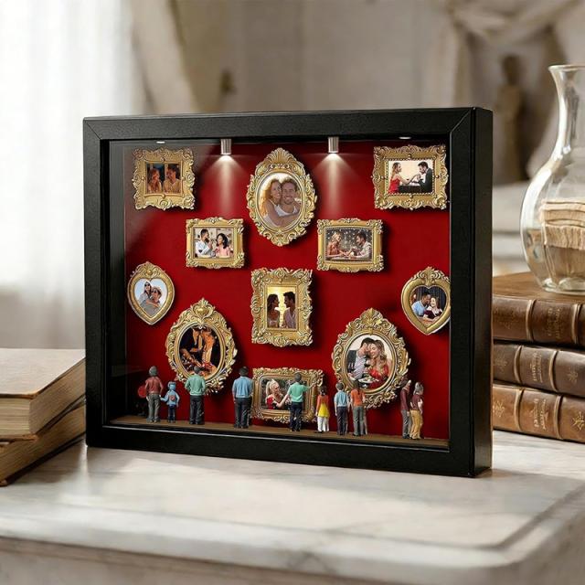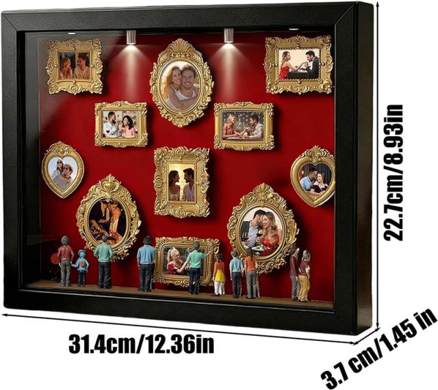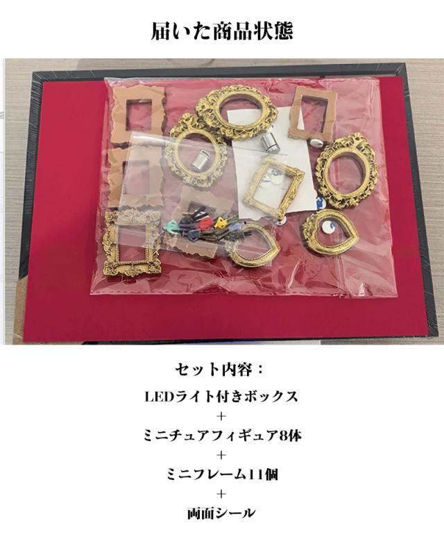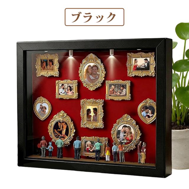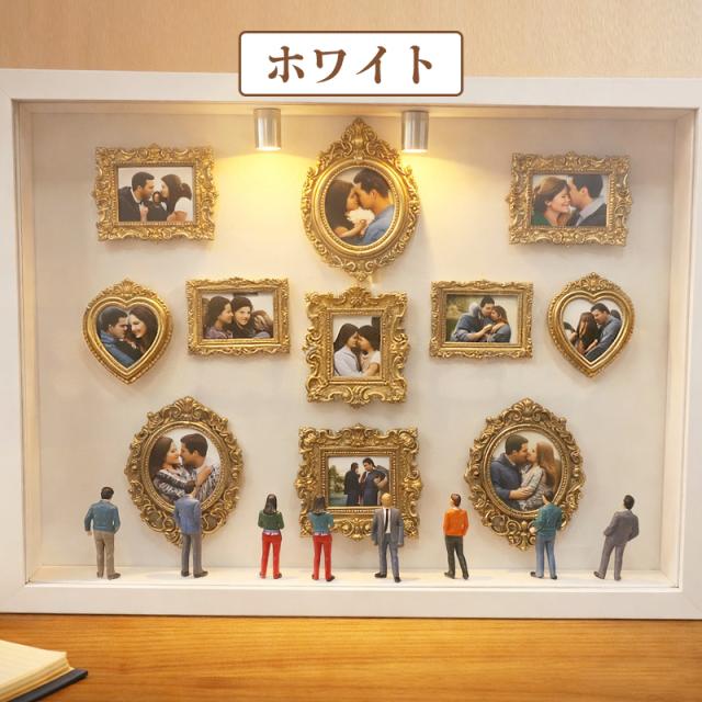 DIY 写真立て 手作りキット ボックスフレーム ミュージアム 家族向け・結婚式向け・誕生日向け・ホームデコレーション向け お誕生日 母の日 プレゼント ユニークな思い出 ギフト DIY ミニミュージアムシルエットボックスLEDライト付き 写真立て 手作りキット ボックスフレーム ミニチュアフィギュア8体 ミニチュア美術館ゴールドフレームキット 思い出をスタイリッシュに祝う 記念日用シャドーボックスフレームキット 結婚記念日 ホームデコレーション