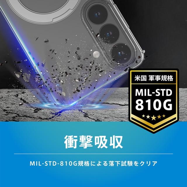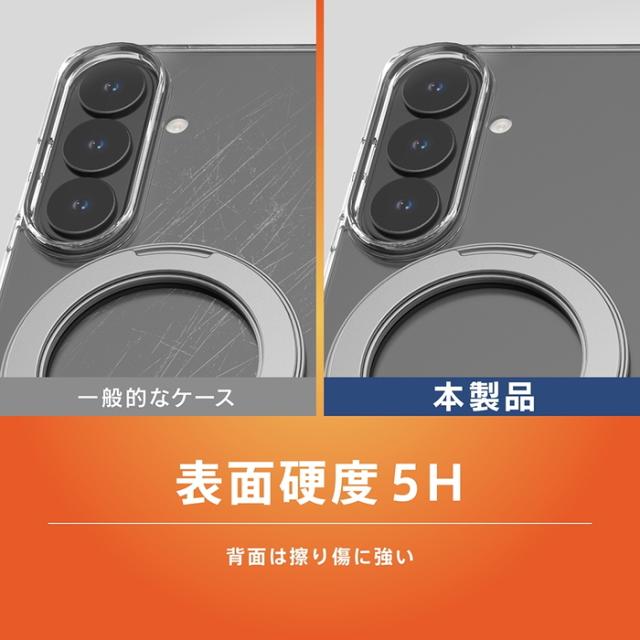 背面の超硬質素材×側面のやわらか素材 マグネット吸着式アクセサリー対応 回転式リング付き 衝撃吸収 ハイブリッドクリアケース