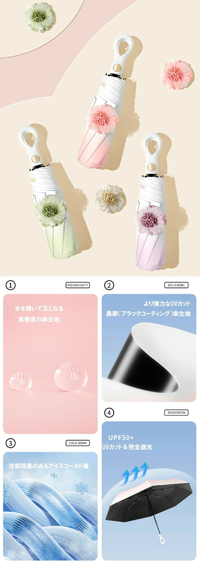母の日 日傘 完全遮光 遮光率 100% UV カット 紫外線遮蔽率 99.9% 遮熱率 59% -10℃ 遮熱 涼しい 傘 晴雨兼用傘 レディース ボタニカル 紫外線対策 お肌を守る 誕生日 メッセージカード プレゼント ギフト