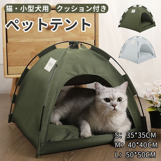 ペットテント 猫テント 猫ベッド 猫ハウス テント ペット 犬用テント 小型犬用 ペットベッド クッション付き 四季通用 洗える S M L 室外 室内用 通気性 オールシーズン