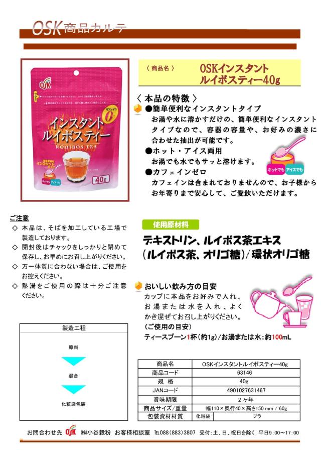 OSK インスタント ルイボスティー 1袋(40g)カフェインゼロ