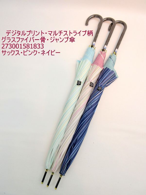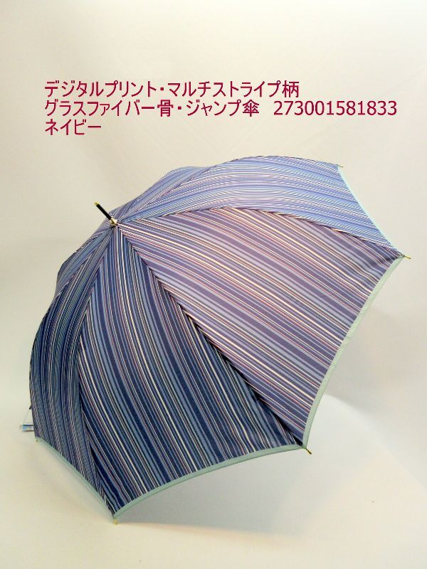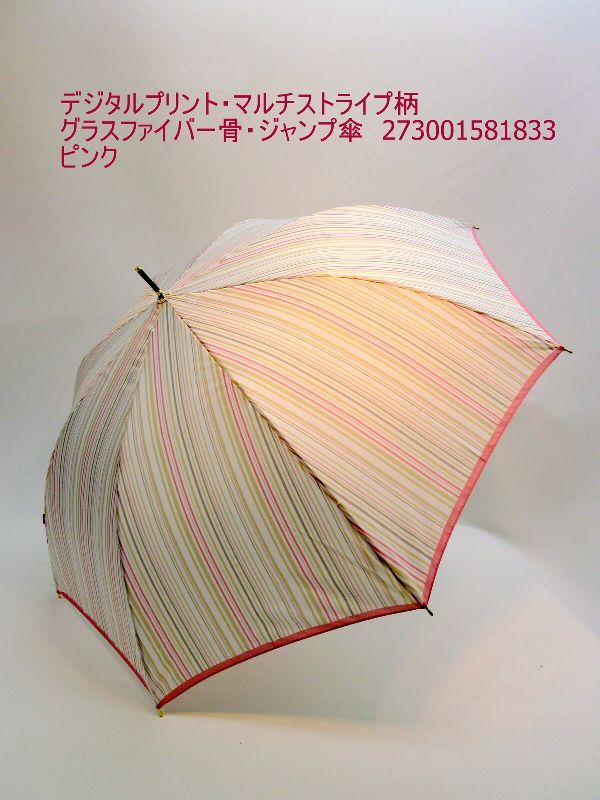 雨傘 傘 ファッション小物 レディースファッション 長傘 婦人 デジタルプリント マルチストライプ柄 グラスファイバー骨 ジャンプ傘