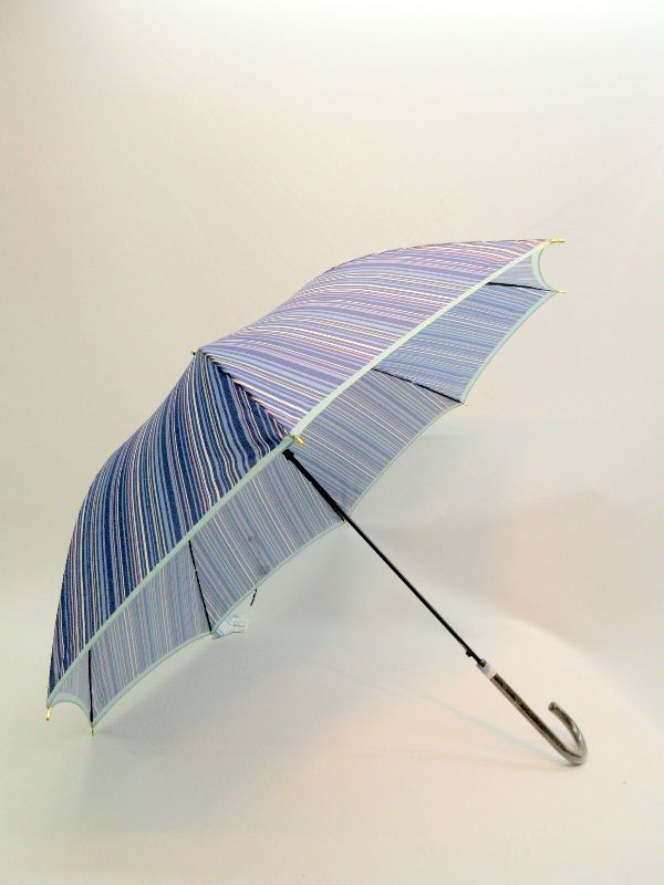 デジタルプリントのオシャレなマルチストライプ柄ジャンプ雨傘です。軽くて強いグラスファイバー骨。