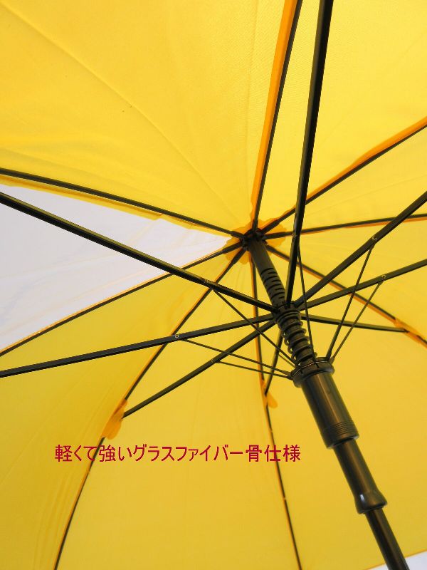 小学校高学年程度の大判サイズです。親骨は曲がっても折れにくいグラスファイバー骨使用・軽くて丈夫なジャンプ無地傘です。