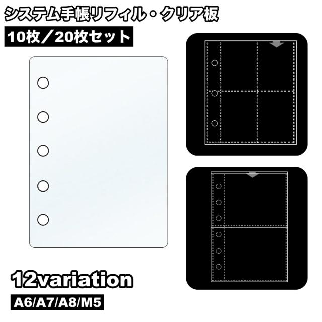 システム手帳リフィル クリア板 10枚セット 20枚セット A6 A7 A8 M5 6穴 仕切り板 クリアポケット バインダーポ