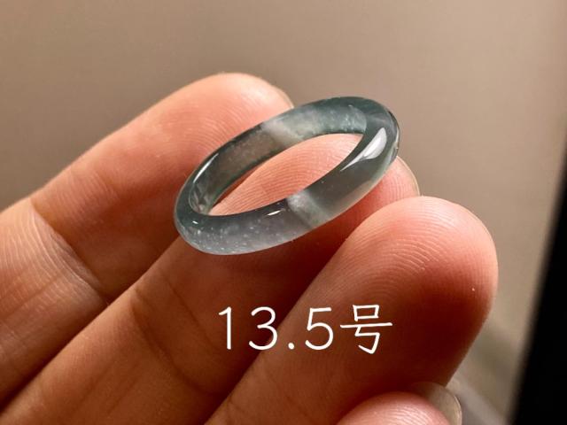 L16-203 氷種 青色 13.5号 グアテマラ産 A貨 本翡翠 くりぬき リング