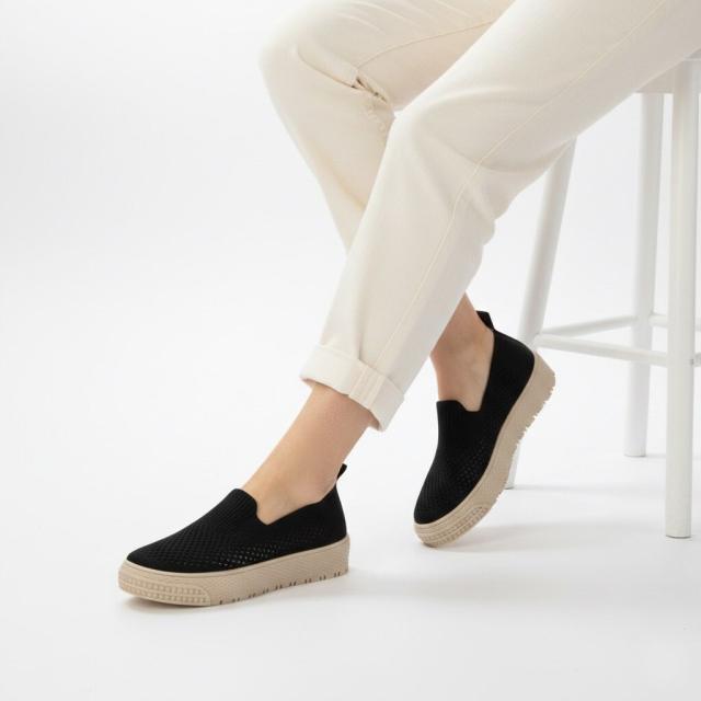 ・軽やかな履き心地: 通気性の良いニット素材が足に優しくフィットし、快適な履き心地を提供します。