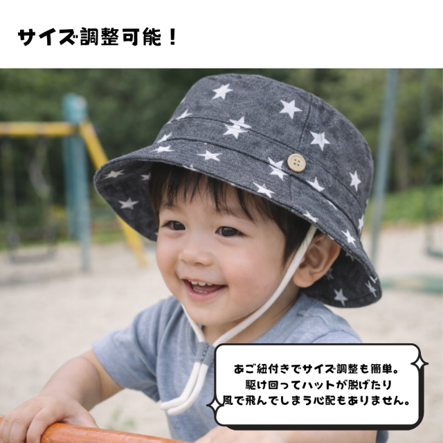 ベビー バケットハット 帽子 日除け帽子 UV対策 ハット 日除け 春 夏 サイズ調整 暑さ対策 紫外線対策 ツバ あご紐 通園 公園 旅行 アウトドア 川 山 海 可愛い おしゃれ 0歳 1歳 2歳