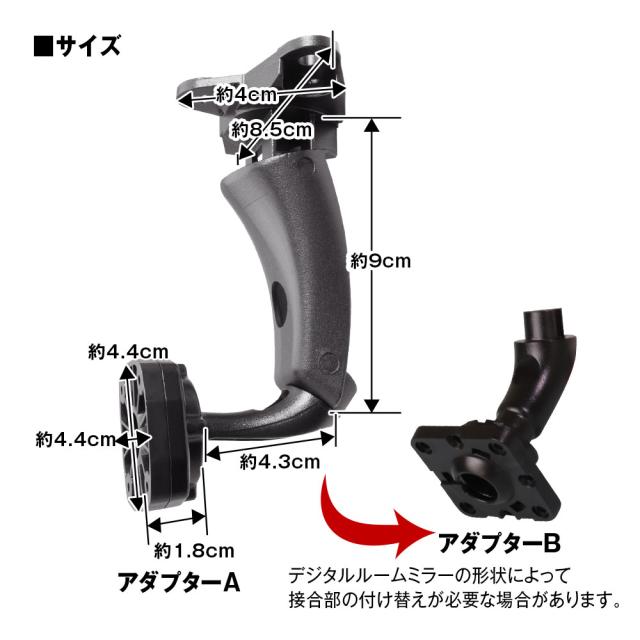 ※取り付けるデジタルルームミラーの形状により接合部の付け替えが必要な場合があります。