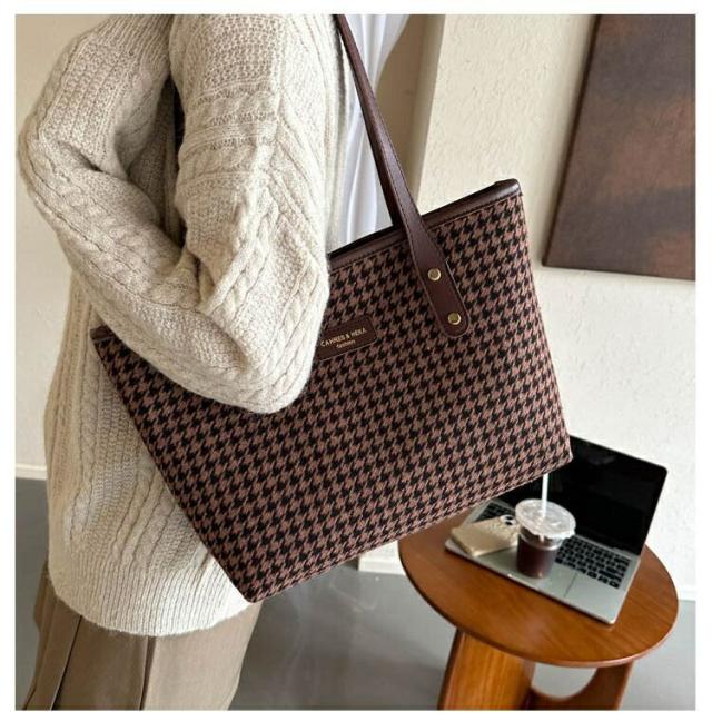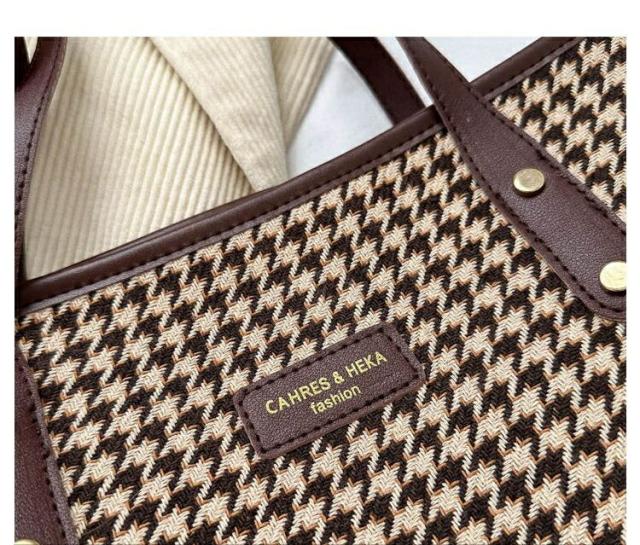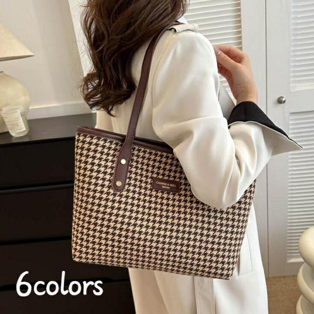 バッグ トートバッグ レディース チェック柄 千鳥格子 バイカラー ショルダーバッグ スクエア おしゃれ 冬 ブラウン 韓国 秋