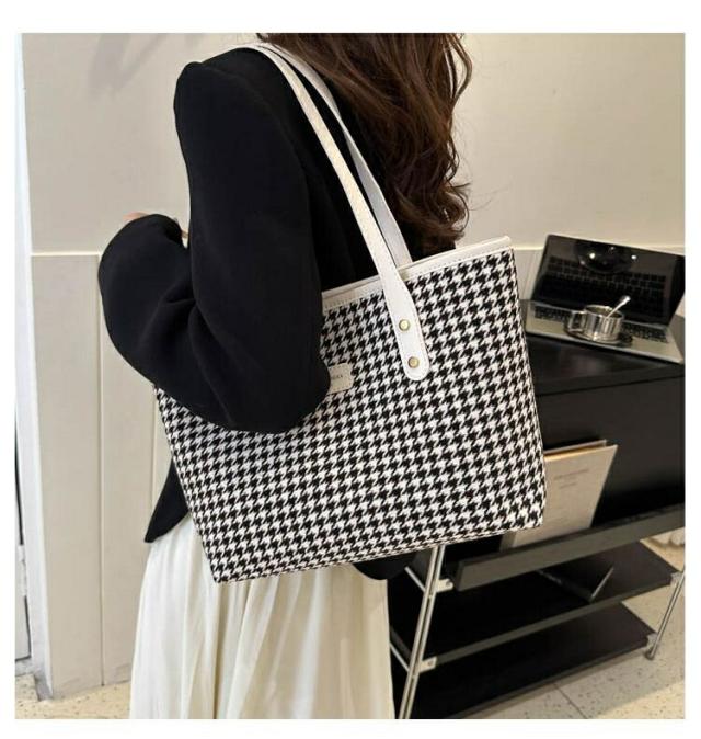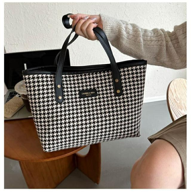 バッグ トートバッグ レディース チェック柄 千鳥格子 バイカラー ショルダーバッグ スクエア おしゃれ 秋 冬 ブラウン 白 黒 韓国