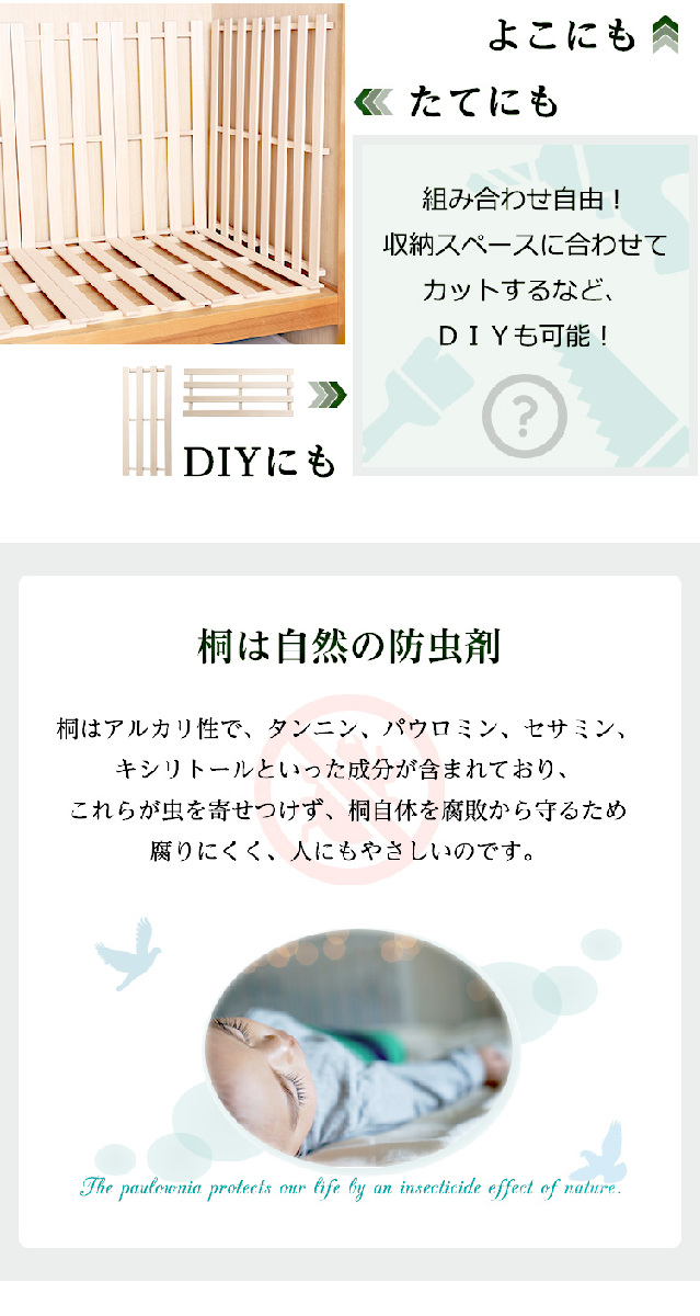 ●桐は防虫効果が期待できる素材で、大切な衣類の収納に適しています。