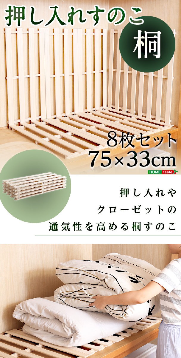 すのこ 押入れ桐すのこ 軽量 8枚入り ( 布団 下 収納 スノコ 桐 幅33×奥行75×高さ2.8cm 押入れ クローゼット 湿気 カビ 対策 通気性 衣類 洋服 ふとん 保管 ベッド下 押し入れ 布団収納 寝具 押し入れ収納 調湿 床敷き )