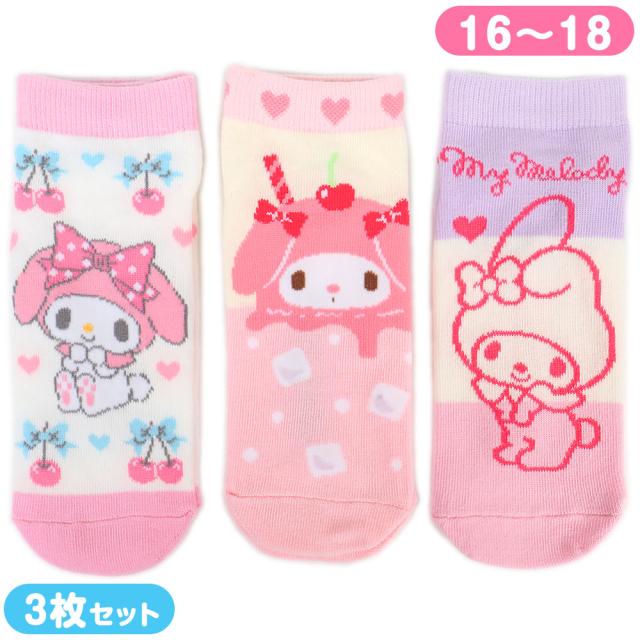 マイメロディ キッズソックス 靴下 3足セット 16-18cm スニーカー丈 女の子 子供 子ども キッズ サンリオ キャラクター